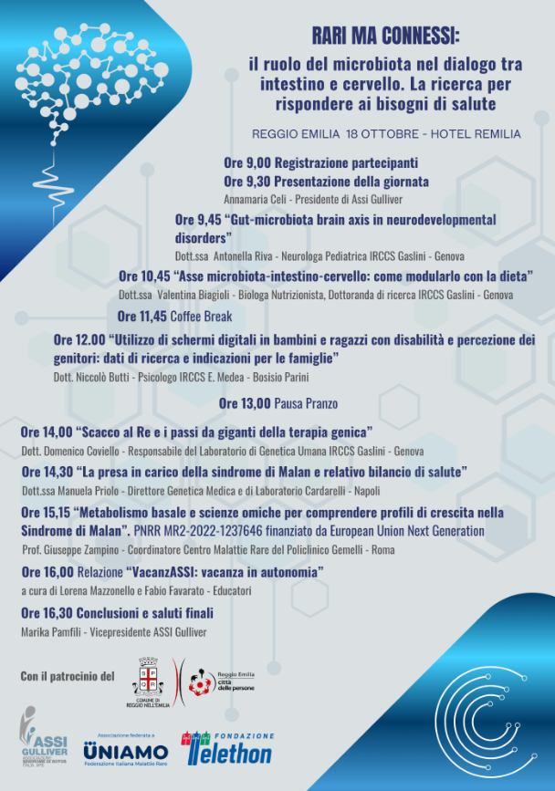 Un programma ricco e diversificato che vuole evidenziare i diversi ambiti in cui ASSI Gulliver opera, mettendo in atto azioni concrete che hanno l’obiettivo il miglioramento della qualità della vita delle persone con Sindrome di Sotos e Sindrome di Malan e le loro famiglie.